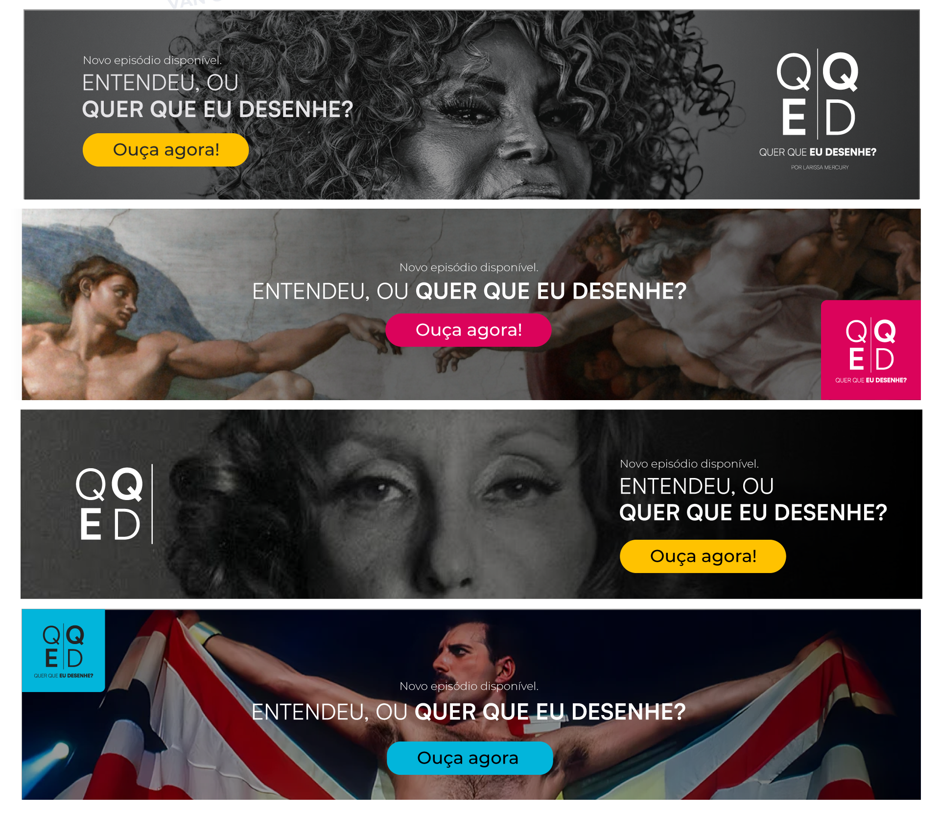 O “Quer que eu Desenhe?” é um podcast que une design, criatividade e cotidiano, traduzindo conceitos visuais em conversas leves e provocativas. Criei toda a identidade visual, do naming ao design do logotipo, explorando elementos gráficos que remetem ao traço, à experimentação e à liberdade criativa.
